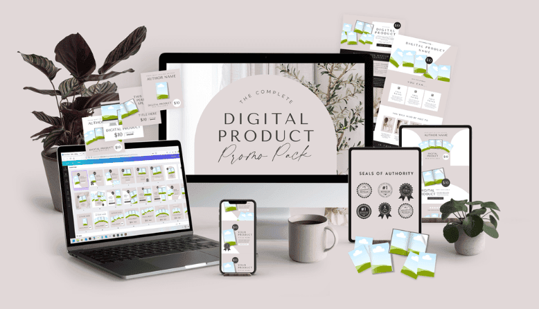 ONE TIME OFFER $37: Create all the promotion materials you need using this bundle. It includes: ✅ Social Posts To Promote Digital Products ✅ Premium Custom Made Mockup Template (not only the Canva Standard Mockups everyone uses) ✅ Facebook Promo Banners for digital products ✅ Email Promo Headers ✅ Pinterest Pins to build up backlinks and organic traffic ✅ Seals of authority to uplevel the perceived value of your digital products ✅ A Canva Sales Page Template you can link to a stripe checkout. You can use these templates to promote the digital products you decide to resell AND/OR you can also resell these separately or in the bundle.